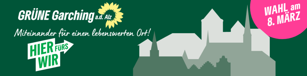 wir als Ortsverband von BÜNDNIS 90/DIE GRÜNEN setzen uns gemeinsam für ein lebenswertes, soziales und zukunftsfähiges Garching ein. Uns verbindet der Anspruch, Politik vor Ort konkret zu gestalten: zuhören, Probleme ernst nehmen und gemeinsam tragfähige Lösungen entwickeln.